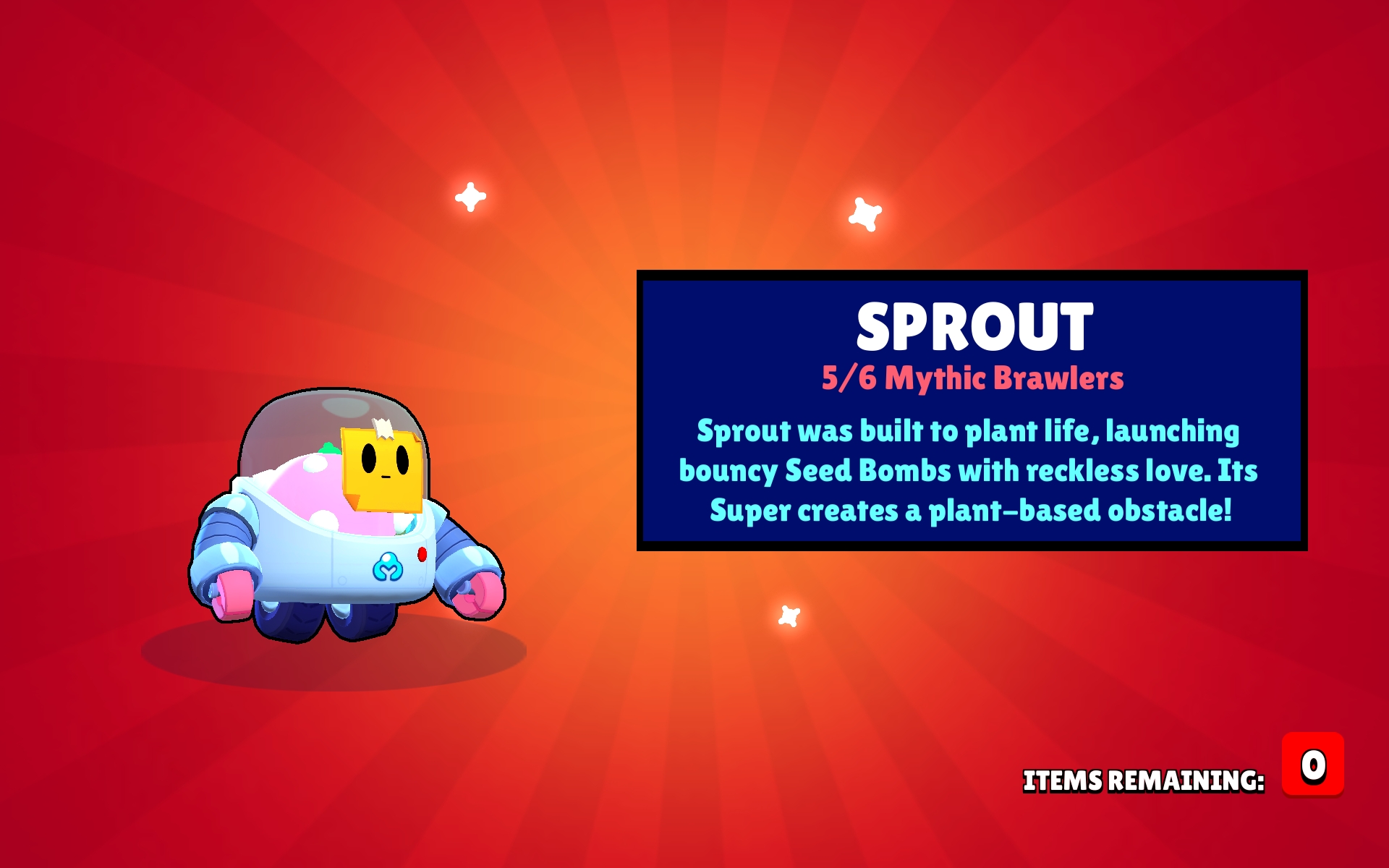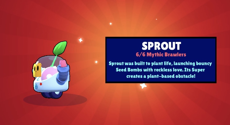 Sprout is a mythic brawler that attacks by throwing a seed bomb over cover that travels forwards around the floor and bounces off walls. Keep your post titles descriptive and provide context. The five million active players show the immense popularity of the game. Decreased rattled hive's bee damage from 1000 to 800. All content must be directly related to brawl stars.